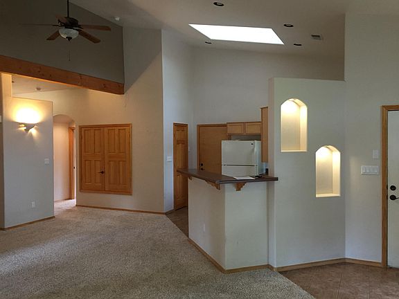This property was built in 2012. It is a custom southwest designed house. It sets in a beautiful green compound which is very private and secure. There are 2 bedrooms and an office area. Raised wood beamed ceilings and color accent walls. Two full baths. Refrigerated air and gas radiant floor heat. The kitchen has a dishwasher, stove and refrigerator. Washer and dryer hookups available. Gas fireplace. Ceramic tile floors throughout.There is a large, fenced back yard with covered portal.Just across Corrales road there is the Bosque area which is a beautiful. wooded area along the river with miles of trails for walking, riding or cycling. There are Horse facilities available on the property. There is additional storage units on the property for lease $75 Mth. . Owner pays water , sewer and trash pickup.Tenant pays Electric and Gas, Rental storage available o site.