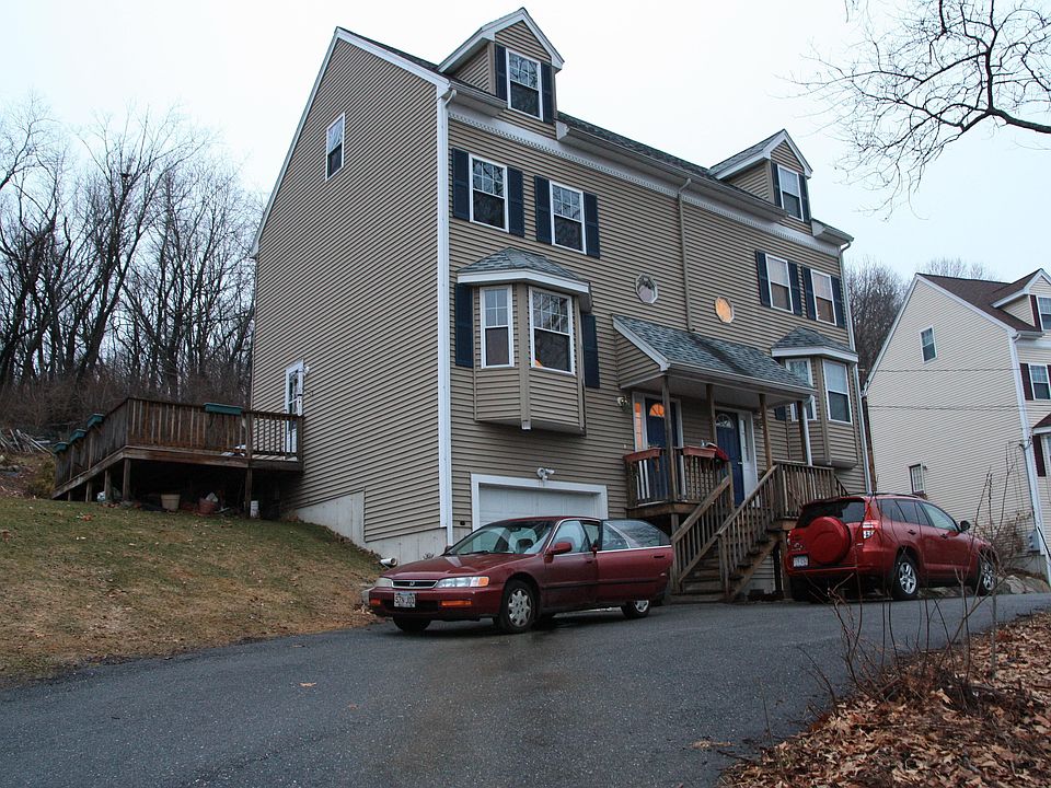 OPEN HOUSE CANCELLED! JUST LISTED! Truly turnkey Bradford townhouse with three levels of living! Features in this well maintained home include; hardwood floors on the main level, open floor plan with eat in kitchen with granite counters, stainless steel appliances, bright and sunny living room with bay window, three large bedrooms including a private en suite master that occupies the entire third floor. Exclusive use outdoor space with oversized deck is perfect for entertaining while overlooking green space. Lots of storage space in the basement, multiple closets and the always desired GARAGE. This young condo is move in ready, easily accessible to commuter routes, in a great neighborhood and affordable with no condo fee! Don't miss out!