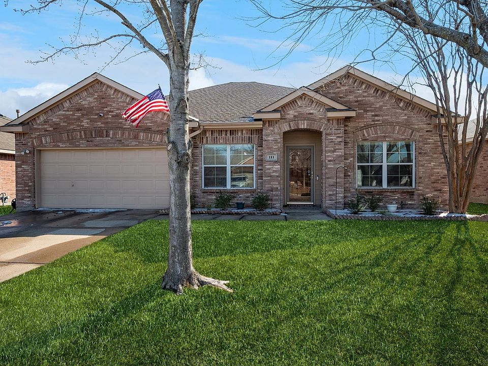 Welcome to Brookville Estates! This delightful home offers a bright, open-concept floor plan that’s ideal for today’s lifestyle. With split bedrooms, high ceilings, a covered patio, and more, this home has it all. It features a dining room with French doors that can easily convert into a study, a spacious living area with views of the large backyard, and a well-appointed kitchen with a breakfast bar and cozy breakfast nook. The private primary bedroom, situated at the rear of the home, includes an en-suite bath with dual sinks, an updated separate shower, a garden tub, and a generous walk-in closet. The secondary bedrooms are well-sized with ample closet space and share a convenient hall bath. Additionally, the home offers a nice sized laundry room for extra storage and space for a washer and dryer. Outside, the covered rear porch is the perfect spot to unwind in the evening shade, and the sizable backyard features an easement behind the property for added privacy. Ideally located in Forney with easy access to Highway 80, shopping, and nearby Rockwall and Heath. New microwave, dishwasher