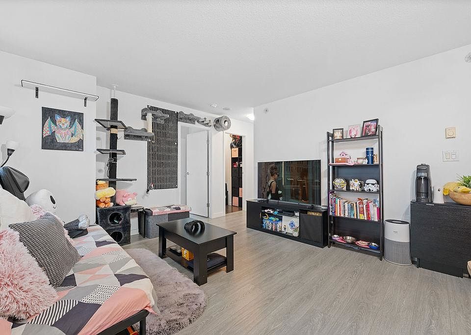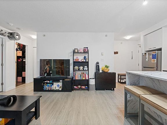 Bright, beautiful, and updated 1 bedroom + den + solarium at SPECTRUM 1, spanning almost 700 sq.ft. with gorgeous city views! This open-concept layout feels spacious and functional — perfect for investors, first-time home buyers, or downsizers. Recent updates include: brand new fridge, stovetop, hood fan, oven, new flooring, and a fresh coat of paint throughout. Spectrum offers outstanding amenities including an indoor pool, fitness centre, and residents lounge. The large living/dining area that allows for multiple furniture configurations, a bright solarium or den ideal for working from home, plus a generous flex/storage room that can serve as additional office space if needed. Situated in an unbeatable location, you're only steps away from Costco, T&T, Rogers Arena, and much more!