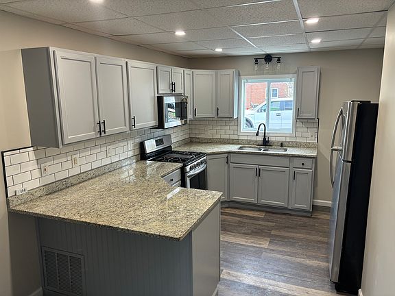 The kitchen features new subway tile back splash, slow close hinge cabinets,new fixtures, beautiful new granite counter top and stainless steel appliances.
