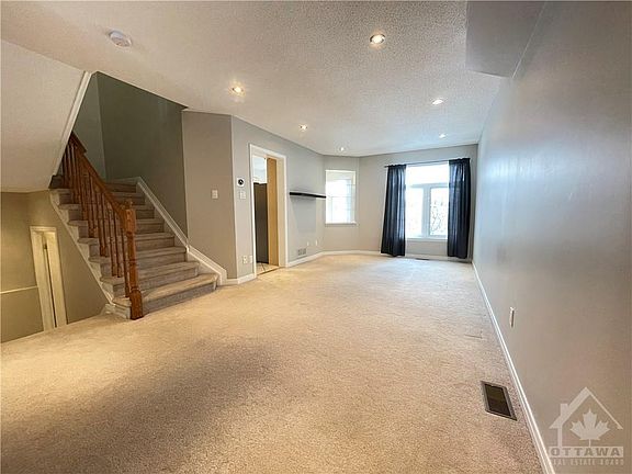 Bright with no rear neighbours in this 3 bedroom townhome with WALK-OUT BASEMENT. You are welcomed by a tile foyer entrance as you step into the open-concept living room and dining room with pot lighting & bright windows. The kitchen space has plenty of working and storage space, along with an eating area. Upper level offers 3 generous sized bedrooms, a family bathroom and a primary bedroom retreat with walk-in closet & 3 piece en-suite. Finished lower level, walk-out family room features upgraded laminate flooring, pot lighting, laundry room and ample storage. Private backyard offering interlock patio, garden beds, and centrepiece apple tree. Quick easy access to 417, walk to library, Earl of March School, Kanata Centrum shopping centre, Kanata Golf Club and more.This is a pet and smoke-free home. Call today.