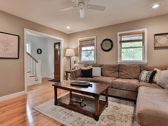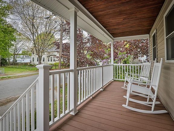 Absolutely adorable, surprisingly spacious & very well cared for 3 bed, 2 bath home w/ first floor laundry! The first thing you see is the welcoming front porch begging you to sit in one of the rocking chairs w/ a cold lemonade! Enter the front door into a bright foyer which boasts a beautiful staircase before you turn left to enter the good size fireplaced living room that is open to a dining area/young kitchen with gas cooking, beautiful maple cabinets, stainless appliances and granite counters. Sliders lead to a composite deck overlooking a flat yard. Large first floor young bath w/ shower & laundry. Upstairs you will find 3 good size bedrooms w/ a young full bath. This home is flooded with light, gleaming hardwood floors throughout, replacement windows, young roof & Buderus Gas Boiler. Additional 3,000 sf lot across street provides great space for a garden & parking. You will be just a few homes a way from Mapleway playground & super close to Bus & Commuter Rail.