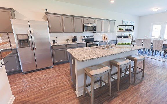 Get the space you need in the location you want at Patriots Ridge, an incredible swim community just minutes to I-20. You'll also have easy access to William Few Parkway, shopping and dining. Incredible traditional family home with guest bedroom and full bath on the main, perfect for visitors. And you will never be too far from home with Home Is Connected. Your new home is built with an industry leading suite of smart home products that keep you connected with the people and place you value most. The central family room opens to an expansive kitchen and casual dining area. The private bedroom suite is a must see with sitting room and dual closets. Secondary bedrooms are spacious and there is even an upstairs living room. Plus a flex room on the main could be a home office, lounge, or formal dining room. Photos used for illustrative purposes and do not depict actual home.