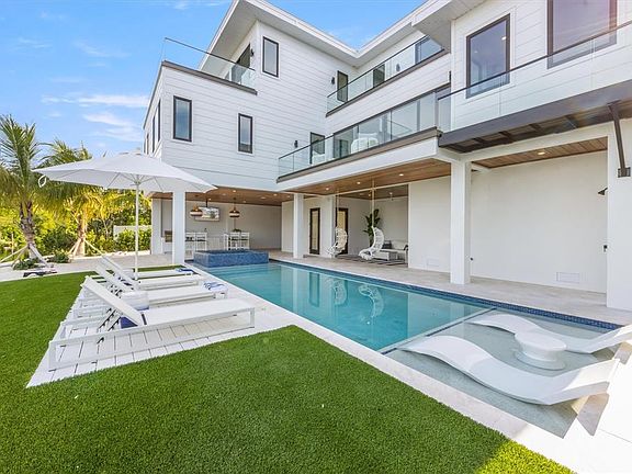 Significant price drop makes this an incredible opportunity!!!! Stunning, brand new construction home with 4 bedrooms, 4.5 bathrooms located on the exclusive North end of Anna Maria Island. This unique, oversized lot sits at the end of a quiet cul de sac and opens onto a wide waterway. The waterfront home is situated to take advantage of sunsets from every room. The open floor plan flows seamlessly to a large deck overlooking the pool and waterway giving you an exceptional indoor/outdoor living feel. The chef’s kitchen is a dream and includes high-end, built-in Thermador appliances, gorgeous custom cabinetry, quartz counter tops and a walk-in pantry. Entertain at your full service bar featuring a beverage and a wine fridge. Completing the main living level is a private office/den. There are 2 oversized master suites with walk in closets, exquisite bathrooms and sliding glass doors opening to expansive decks. The additional 2 large en suite bedrooms also have incredible views. Other features include a large 2 car garage, separate garage to keep your water toys, elevator and more. The backyard oasis may be your favorite as there is a full outdoor covered kitchen and living area with quartz counter tops, grill, stove top, sink, ice maker, beverage fridge, fire table and outdoor shower. Enjoy your sleek, resort style heated pool with Baja entry and covered spa. For the fishermen, there is a large dock to store your boat or fish off the dock. It is just a short stroll to the shops and restaurants of Pine Ave and the world-renowned beaches of Anna Maria. GREAT investment property and currently enrolled in vacation rental program with already over $130k income on the books! Offered turnkey furnished by a professional designer with all of the high-end amenities and furnishings you would expect in this luxury property. Dock your boat and make this piece of Anna Maria Island paradise your own!