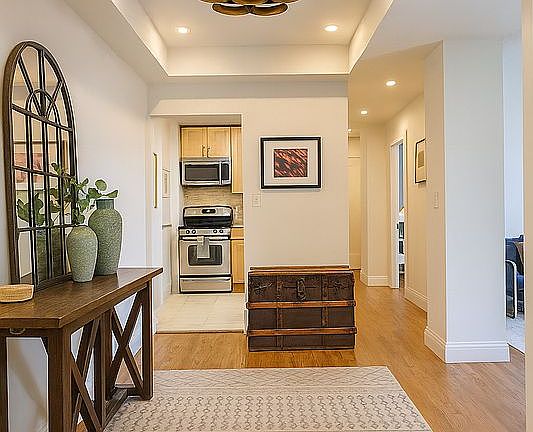 Nestled on a quiet, tree-lined street in the heart of Brooklyn Heights, this beautifully renovated two-bedroom, two-bathroom residence offers both scale and serenity. Set within the historic St. George Tower—an Emery Roth–designed Art Deco landmark—the home blends classic pre-war proportions with modern upgrades, just moments from the Promenade and Montague Street.