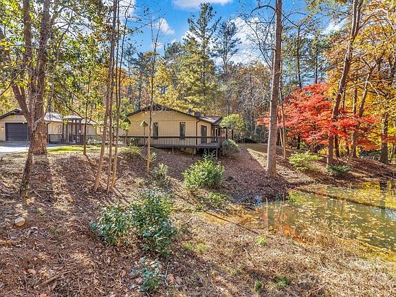 This one-of-a-kind three-bedroom, two-office, 2.5-bath home sits gracefully on the bank of a peaceful pond with its own private dock. Offering 2,667 square feet of thoughtfully designed living space, the property feels worlds away yet remains conveniently close to Asheville City Limits. A canopy of mature trees and lush summer greenery provides privacy and serenity year-round. In addition to the main home, the property includes two smaller houses currently rented and three additional building sites, making this an excellent opportunity for multigenerational living or for investors seeking strong rental income potential and future expansion options. The large yard invites outdoor recreation, while catch-and-release fishing is just steps from your back door. Cast a line in the soft morning light as mist rises from the pond, or unwind in the evening as gentle rain ripples across the water. Expansive decking creates multiple outdoor living areas—perfect for entertaining, dining al fresco, or simply soaking in the tranquil sights and sounds of nature. Inside, large windows and sliding glass doors fill the home with natural light, creating an inviting, airy atmosphere. The spacious kitchen features light cabinetry, a stainless steel dishwasher, a modern range hood, and generous counter space for cooking and gathering. The adjoining dining area—ideal for family meals or dinner parties—flows seamlessly into a welcoming living room, both anchored by cozy gas log fireplaces that add warmth and charm throughout the seasons. The primary suite provides a peaceful retreat, complete with a luxurious bath featuring a jetted soaking tub and a walk-in closet with custom built-in drawers. Two additional offices offer flexible space for remote work, creative pursuits, or guest accommodations. A separate laundry room (washer and dryer included) and a private garage add everyday conveniences. Whether you’re sipping coffee on the dock, hosting friends on the deck, or relaxing by the fire, this home delivers the perfect blend of privacy, comfort, and proximity to both Asheville and Weaverville’s vibrant amenities.