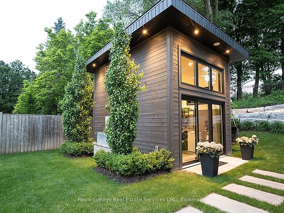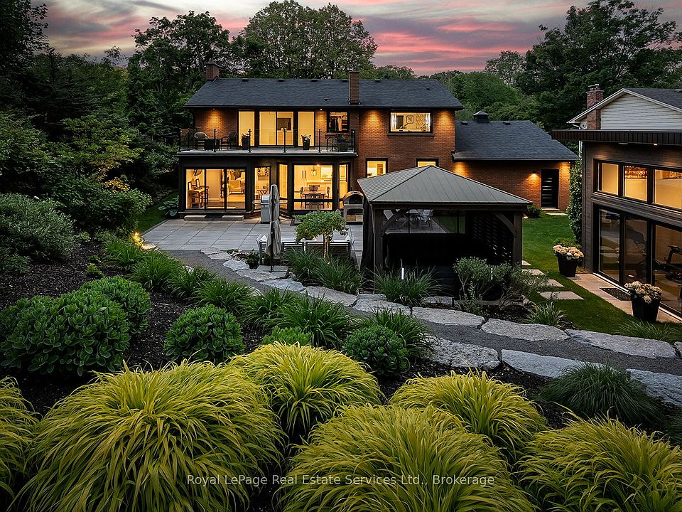 Welcome to 111 Judith where craftsmanship meets serenity. Nestled in the heart of Mansfield, this over 3,500 sq. ft. Girard Custom Home is surrounded by mature trees, offering a seamless blend of luxury, privacy, and nature. From the moment you arrive, professionally landscaped grounds and refined hardscaping create an atmosphere of calm sophistication. Outdoors, enjoy the hot tub and hilltop fire pit-perfect for evening gatherings. A detached accessory building with soaring 12-ft ceilings provides versatility as a private gym, work-from-home studio, or guest retreat. Inside, every detail has been curated with intention: white oak flooring, a striking book-matched porcelain feature wall, and expansive windows that flood the home with natural light. The chefs kitchen is both stylish and functional, featuring Thermador appliances, a large island, and a double-faucet workstation ideal for entertaining. The main level also includes a dedicated office, elegant powder room, and a convenient laundry suite. Upstairs, retreat to the principal suite sanctuary complete with a spa-inspired five-piece ensuite (heated floors), expansive walk-in closet, and a large private balcony. The second and third bedrooms share a beautifully designed bathroom. The lower level extends the homes versatility and flow, featuring a spacious games room, recreation lounge, and steam shower bath. A fourth bedroom and direct stair access to both the garage and outdoors make this level ideal for guests, multi-generational living, or private entertaining. Just steps from the Hamilton Golf & Country Club and Ancaster Village, 111 Judith offers a lifestyle defined by exceptional design and peaceful privacy.