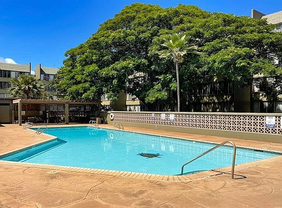 It is in first floor and end unit with less foot traffic and easy access. New wood floors, newly painted walls and Fair new appliances. 1 assigned parking stall and many visitors parking. Pool and laundry onsite. Playground and barbecue area. Gated 24 hours security. This area is served by the Hawaii Department of Education Attendance Zone.