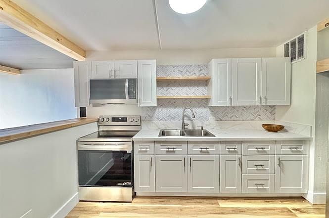 Scenic charm ocean viewsModern updatesFresh interior paintLarge picture windowStylish vinyl plank flooringNew stainless steel appliancesGranite counters