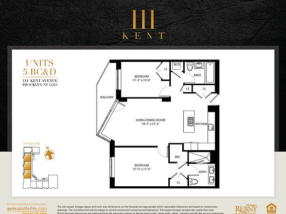 This 1104 square foot apartment home has 2 bedrooms and 2.0 bathrooms. This home is located at 111 Kent Ave APT 5B, Brooklyn, NY 11249.