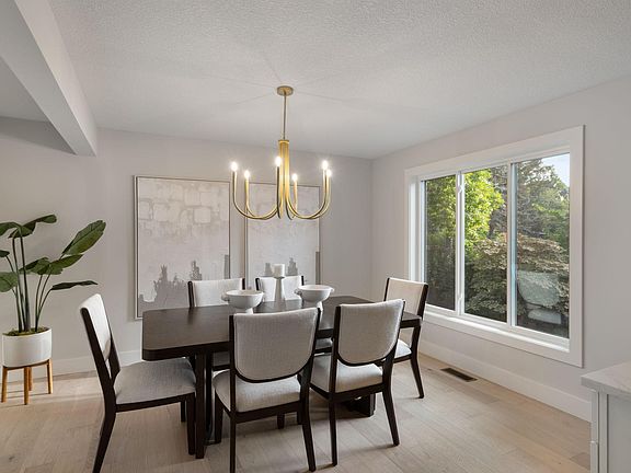 A home not to be missed. Step inside and experience the thoughtfully crafted spaces and warm, organic design that create a home that’s both elevated and comfortable. The light-filled kitchen welcomes. Smartly designed for function and style, you’ll find all new cabinetry, striking quartz countertops, an elevated backsplash and a generous island. An open layout creates a natural flow that makes everyday life and hosting feel effortless. The focal point of the living room is the gas fireplace with custom mantle and tile surround. Perfect for those cozy evenings at home. Enjoy a dining room designed to be part of your every day with a coffee and beverage bar area that will become a new morning ritual or evening wind-down tradition. Custom wall detail and striking chandelier complete the dining space. Upstairs, four bedrooms share one level. The primary suite offers a generous bedroom and spa-inspired bath complete with a soaker tub, wood toned vanities and chrome accents throughout for a timeless yet modern feel. The lower level offers a lounge designed for unwinding, hosting, or disappearing into a good movie, complete with a custom-designed bar area. An additional bedroom, ¾ bath, and flex space round out this level. Whether you need a home gym, guest room, or all of the above, this home accommodates. Located minutes from downtown yet surrounded by everything suburban life offers. This home strikes the perfect balance between intentional design and everyday function.