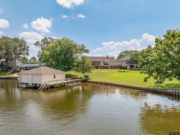 Designers dream project!!! Once in a blue moon opportunity on the Open Waters of Saline Bay in sought after Bullard ISD. 111 Lakeshore sits on a total of MOL - 1 acre total. Home lot is .373 and rest is Upper Neches Reserve. Perched on the gentle hill of Emerald Bay, this property offers breathtaking views of the expansive deep waters of Saline Bay! This home was built by the seller and has been their family's home since 2001. Great bones and great location! It sits at the end of a cul-de-sac for the utmost privacy. Primary , guest room, office, formal dining, 2.5 baths, kitchen, breakfast nook and laundry all on the first floor. Upstairs you will find a wonderful space!!! Boasting 2 bedrooms, 1 full bath, kitchenette and a large bonus room that could be a 5th bedroom if you needed. The boat house has an outside lift for a sailboat. Part of the shoreline is sandy so the children can easily go out and play in the water. A very large garage with plenty of room for a workshop, golf cart and two large vehicles. Come take a tour!!