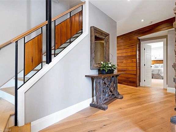 Welcome to The "BAY HOUSE" in the charming Village of Thornbury. This is a custom build by Black Tusk, a company renowned for designs that nourish the soul and enrich your time within. From the moment you enter, the attention to detail, quality of materials and workmanship are evident. The concept behind this build was to bring the outside in, which was achieved by the organic materials used throughout the house. The wood accents and custom cabinetry are all made from kiln-roasted maple and the hardwood floors are oil finished live white oak. The main floor Master Ensuite was also inspired by nature with a "wave wall" of gypsum formed tiles and a Victoria & Albert freestanding slipper tub made of volcanic limestone. A unique feature to this elegant home is that it has 4 fireplaces; 2 wood-burning, 2 gas and a wood-burning firepit in the backyard. This private and peaceful retreat is surrounded by nature and is walking distance to the charming Village of Thornbury with many cafes, shops and restaurants, has access to Georgian Bay and the Georgian Trail and golfing at the Georgian Bay Club and Lora Bay. This stunning home is being sold COMPLETELY FURNISHED, so all you need are your clothes and sporting equipment and you are ready to start your Four Season Lifestyle. At this location, everything is right at your doorstep.