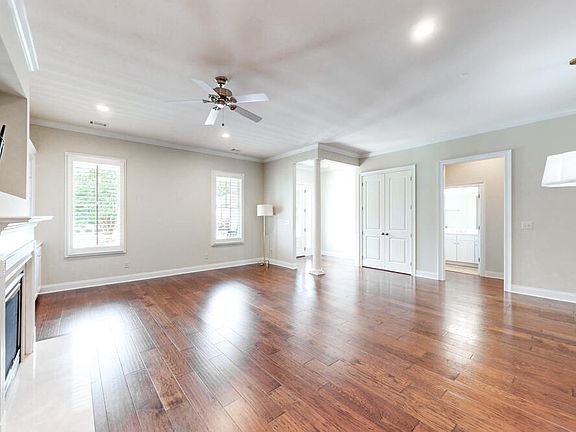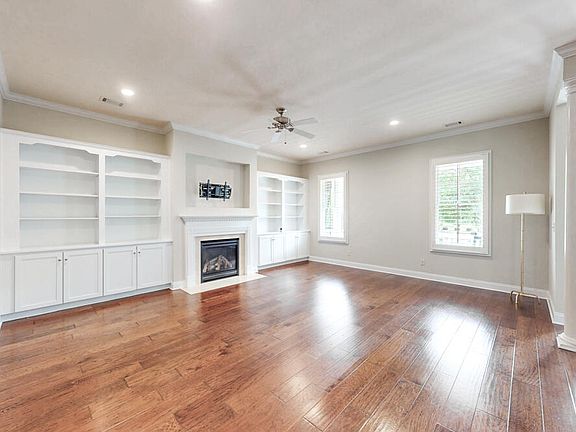 Welcome to your perfect move-in ready retreat - whether you're seeking a second home, a serene retirement haven, or an everyday place to call home, this lovely 2 bedroom plus office home will not disappoint! With the HVAC being replaced in 2024 and a tankless water heater, this will give you peace of mind for years to come! Step onto the fabulous welcoming rocking chair front porch that spans the length of the home with a high ceiling, a custom ceiling treatment and custom Bahama-style shutters on either side for added privacy! Enter through the modern glass panel front door into a bright foyer, where a tray ceiling, upgraded light fixture, and high ceilings set an elegant tone! Hardwood floors flow through the main living areas, enhanced by crown molding for a timeless touch! Relax in the inviting living room featuring a cozy fireplace with built-ins on both sides, and a ceiling fan! The dining room is accented by an upgraded light fixture! The kitchen has a well designed layout and includes granite countertops, an island with seating, backsplash, pantry, gas range, built-in microwave, dishwasher, refrigerator, and a charming breakfast nook! Make your way to the owner's suite, where a tray ceiling and ceiling fan create a tranquil ambiance! A generous walk-in closet, a private bathroom with a walk-in tiled shower, double-sink vanity, soaking tub, and water closet complete this sanctuary! A spacious guest bedroom with a nearby full bathroom featuring a walk-in tiled shower, ensuring comfort for family and visitors! The awesome office provides flexible space to suit your needs, whether it's a home office, a den, or another bedroom! Outside, Cobblestone parking and a charming courtyard with a community fire pit invite you to spend quality time with neighbors and other loved ones! Easy maintenance with monthly $210 association fee covering grass cutting, trimming, leaf blowing, edging, fertilizing, mulching, and sprinkler operation/maintenance. The Village at Woodside is a picturesque community that truly feels like a lifestyle, ideal for retirement, professionals, and anyone seeking a peaceful, connected way of living! It's within walking distance to the Village shoppes, cafes, bocce ball court, and the upcoming Publix, and even healthcare facilities! Come visit and enjoy the lifestyle this home offers! A welcoming atmosphere makes it easy to feel right at home from day one, if you're ready for a move-in ready retreat with every comfort thoughtfully designed, this is the one!