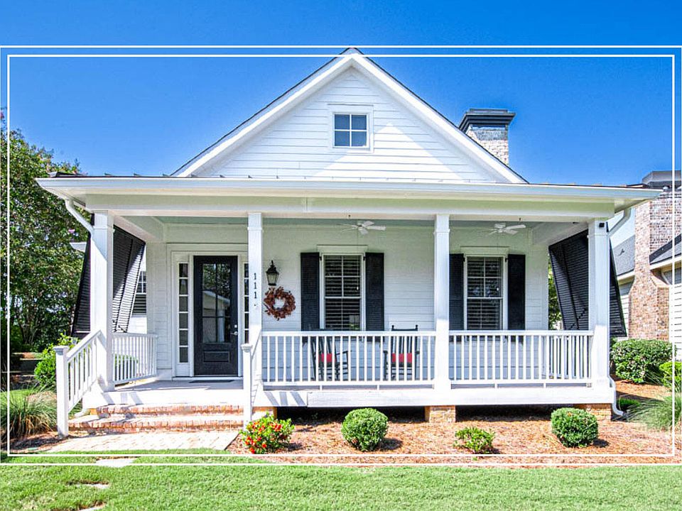 Cozy fireplaceCobblestone parkingRocking chair front porchIsland with seatingGuest bedroomGas rangeCharming breakfast nook