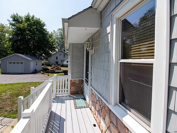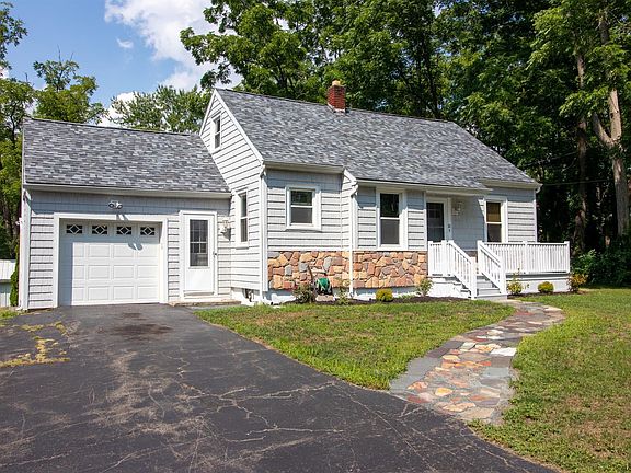 Charming Cape on a quiet tree lined street! Well maintained with many updates such as vinyl cedar shake siding, replacement windows, 30 year architectural shingle roof, high efficiency buderus boiler, newer appliances, gas fireplace, and fenced yard. Two large detached garages and one attached garage! Master bedroom on the first floor with a private bathroom. New front porch and a covered back porch. Generac generator, park-like yard, Lennox heat pump that helps keep heating bills very low.A MUST SEE! Pool water heater excluded from sale.