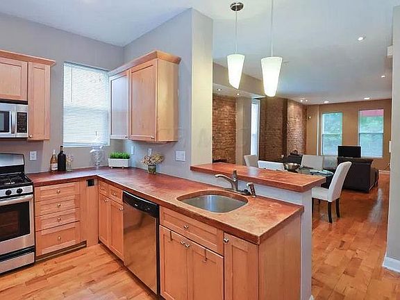 Freshly painted and carpeted 2 bedroom townhouse/condo apartment (end unit) with 2 1/2 baths. Exposed brick throughout, concrete counters, breakfast bar, gorgeous hardwood floors and second floor washer/dryer. Located on corner of Latta and Fair, close to Franklin Park in Olde Towne East. Owner pays for water/sewage. Pet deposit and pet rent.