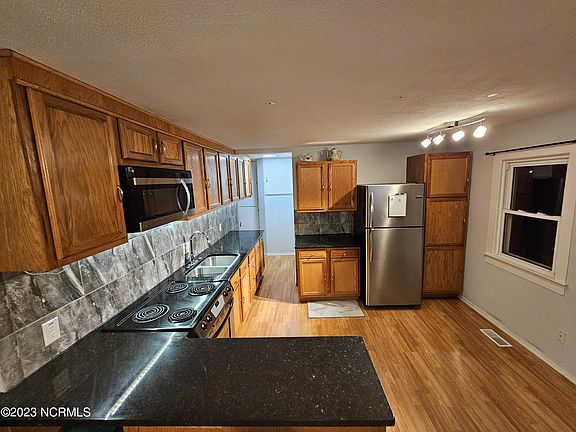 Single attached garage with mini split could be easilly converted to master bed-room or family room. You would still have a double carport and a detached garage with 1 finished room, a commercial grade fan and a window AC. This 768 sq ft building serves many possible purpos. There is a big deck on the front. Many nice upgraded features include built-in shelving in hall; laminated and ceramic tile flooring; beautiful kitchen with granite countertops, newer appliances. Custom quality windows too. Detached garage is perfect for work shop, working on cars and other hobbies. One room in detached garage would make a perfect office. Don't miss out on this property offering so much!