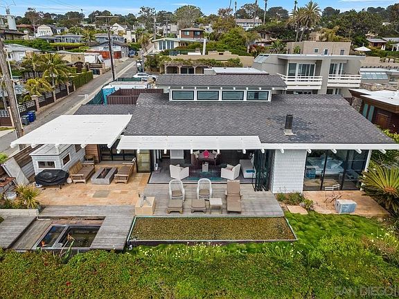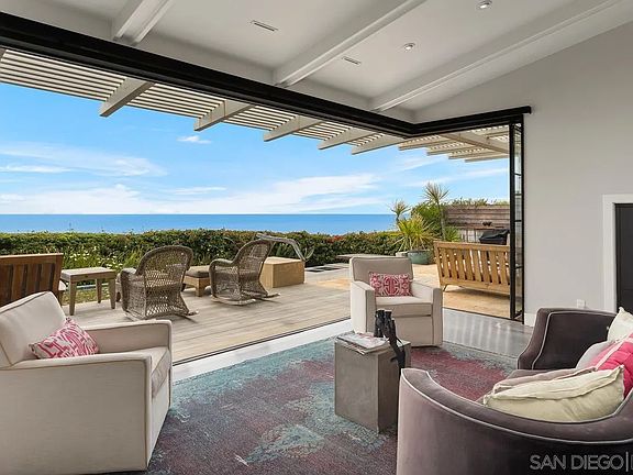 Fully furnished, ocean front monthly rental offered at $25,000/month. Renovated 3 bed, 2.5 bath modern oasis on the oceanfront of the iconic DelMar beach. Stare into the beautiful blue waves of the Pacific Ocean & catch sunsets from the most epic spot on the coast! Enjoy panoramic unobstructed oceanviews throughout. This exceptionally designed property was completed with no detail overlooked. Functional, open floor plan with the very best of indoor / outdoorliving. The family room opens to the gorgeous wood deck complete with jacuzzi, cold plunge, covered outdoor patio space, fire pit, sauna, outdoor shower, beautifulspa-like water feature & more. On the entry level is the kitchen, family room, master bed / bath & secondary bedroom with murphy bed & powder bath. Downstairsyou will find a large bunk room bedroom, full bathroom with tub & laundry room. The garage has been converted into the Murphy bed room so parking includes onecarport space. Do not miss this gorgeous oceanfront gem!