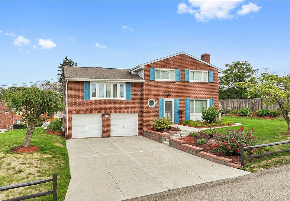 Situated in the heart of Shaler, minutes to McKnight Rd, Kiwanis Park/Pool, downtown, Lawrenceville and the North Shore, this brick home has amazing curb appeal: beautiful landscaping, newer cement driveway and walkways and retaining wall (all replaced within the past 3 years.) The welcoming entry leads you into the bright and spacious family room with wood-burning fireplace. You’ll love the updated eat-in kitchen with maple cabinetry and backsplash which flows into the dining room. Enjoy game night in the cozy sunroom overlooking the expansive corner lot. On the middle level you’ll find a spacious living room with picture window and hardwood flooring plus the master bedroom with updated full bath. Three additional bedrooms, plus another full bath await on the upper level. Meticulously maintained home, charming neighborhood with park! Additional updates include: windows (2021/except bay window), HVAC (2019 with new AC condenser 2023), water tank (2023), roof (2017/50 year shingles.)
