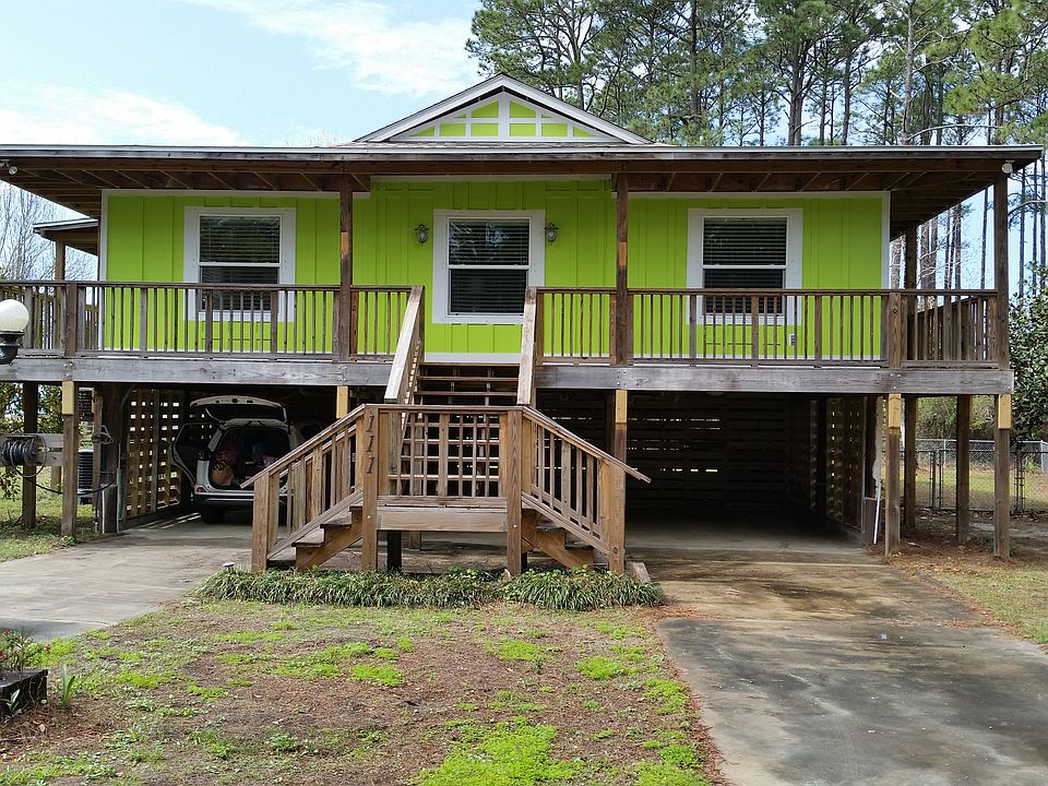 LOVE, LOVE, LOVE this house. This perfect beach house has 4BR/4BA and a large spacious, open floor plan with lots of windows & lots of light. Fantastic kitchen area with upgraded gas stove,a huge island & tons of cupboard space. Granite countertops, SS appliances & farm sink. Great view of the Gulf & the gorgeous sunsets from the covered deck. Plenty of parking for boats & cars and underneath the house has the potential for a lot more living space. Currently there is an enclosed storage area. The lot is large and only a block to the dedicated beach. Located in Beacon Hill where dogs & bonfires are allowed on the beach. Desirable X flood zone where no flood insurance is required & no HOA's. Seller completely gutted and renovated this home right with new EVERYTHING! No storm damage at all.