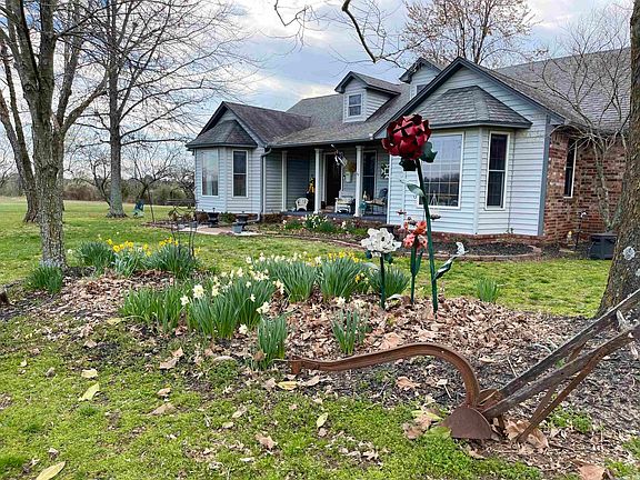 Peaceful country setting on 16 acres of pasture land with a pond and seasonal creek! This 3 bed/2bath home was updated with the finest materials including granite in the kitchen, stainless appliances, and hardwood floors throughout. The large vaulted living area contains a wood burning fireplace and custom Townsend paneling. There is also a separate dining room and sunroom for entertaining. The entertaining can be carried to the outside with the multiple porches and patios where you can watch the sunrise and sunset. A well was installed for all outside watering of the gorgeous landscape. A two car detached garage and a separate shop to store all your tools rounds out this exceptional property. Mineral rights do not convey. Recent upgrades include new guttering, a water heater, landscaping, and the condenser unit on the large HVAC. This home and location is truly a MUST SEE!