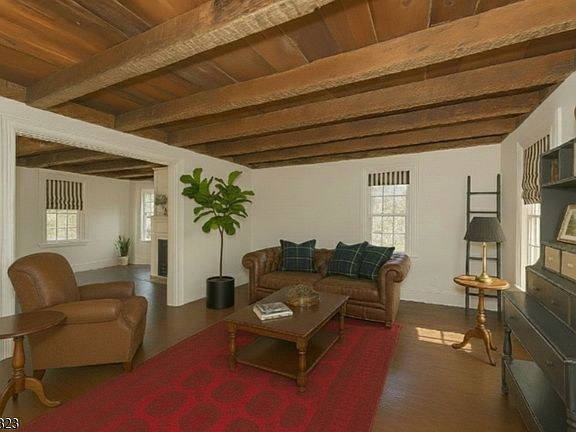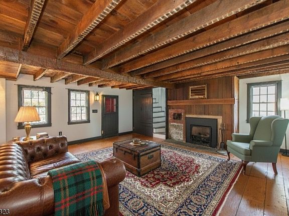 A Remarkable Blend of 18th-Century History & Modern Luxury! Discover a rare 1756 Colonial with an1830 addition. Once a well-traveled Revolutionary War tavern, this exceptional home has been meticulously restored and preserves treasured period elements including exposed hand-hewn beams, wide-plank floors, an original beehive oven, and multiple fireplaces, all seamlessly complemented by thoughtful modern updates. The formal dining room showcases an elegant bay-window alcove and fireplace, while pocket doors open to a warm, inviting living room with beautifully finished hardwood floors. The updated kitchen features quartz countertops, newer appliances, and large windows that fill the space with natural light. Modern comforts include 2-zone central air, 2-zone heating, and updated windows. Offering 4 bedrooms (2 without closets) and 3 baths, this home provides flexible spaces ideal for work, studio, or guest accommodations. Set on nearly an acre of beautifully landscaped property, the outdoor experience is fantastic as it features a multi-tier private backyard, three stone patios, Hessian-built walls, and a garden pergola, perfect for entertaining or peaceful everyday enjoyment. Prominently positioned among other historic Colonial homes in the heart of Succasunna, the location offers convenient access to shopping, dining, and major routes including 10, 46, 15, 80, and 206. A truly remarkable offering with rare historic character and modern livability! Don't miss this one!