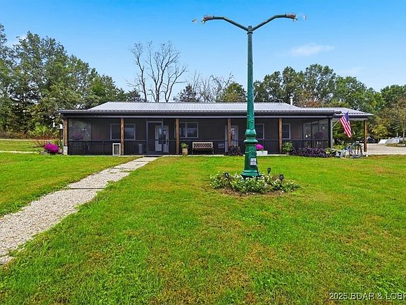 Preppers Paradise. 16.5 secluded acres bordering the beautiful Moreau Creek, minutes from Eldon and Jefferson City! This isn't just a home; it's a fully equipped sanctuary built for peace of mind, recreation, and country living. Relax on the 12'x54' screened-in porch with jacuzzi, overlooking the gorgeous pond. Inside, you'll love the huge living room with a cozy wood stove and a beautiful kitchen featuring stainless steel appliances. The master suite overlooks the pond, has his/her closets, and a luxurious walk-in tiled shower. Natural spring and Moreau Creek bordering the entire property. Fertile fields with existing corn and game plots. Enjoy abundant turkey and deer right outside your door. Game plots & deer stands are ready for the season. Extensive Storage & Workspace Includes: detached 24'x24' garage, a 30'x40' workshop with 12' carport, refrigerator, gas stove for canning, sink, and water heater. Two equipment sheds. A dedicated 10'x8' storm shelter. Comfortable guest house with a bathroom. Established gardens and beautiful landscaping with native flowers. The pond is loaded with catfish, albino catfish, crappie, etc. Surrounded by large farms. More acreage available!