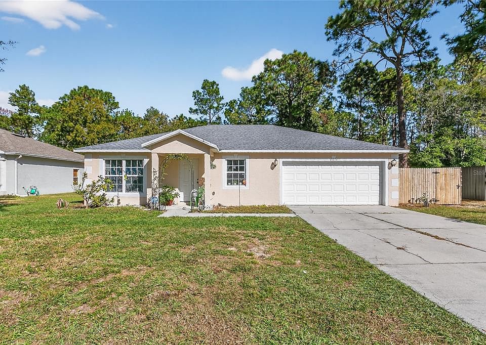 Welcome to this beautifully updated and uniquely versatile, one-story residence built in 2006 and nestled in the friendly / established Marion Oaks community of Ocala! A home which offers a rare combination of comfort, functionality, and multi-generational living options: with approximately 1,212 sq ft of living space, this charming 3-bedroom, 2-bath gem with an attached garage converted into a full in-law suite, features a bright and open floor plan—highlighted by light filled rooms and plenty of opportunity for personalization—perfect for both, everyday living and entertaining. The living and dining areas flow seamlessly into a bright and spacious kitchen featuring clean lines, practical finishes and a breakfast nook/eat-in area, which makes it ideal for casual meals or gathering with friends and family. The primary suite is tucked away for privacy and offers its own full bath, providing a retreat-style feel. The additional two bedrooms are well-sized and share the second full bath—perfect for family, guests or a home office setup, or possibly income producing space. Flooring is easy to maintain as is all ceramic tile throughout. A laundry area and ample storage complete the interior offering, while the central A/C plus electric forced-air heating ensure year-round comfort. AC was replaced in 2019, the roof was replaced in 2024, Septic in 2022. A standout feature of this property is the well-designed in-law suite, accessed through the converted attached garage. This space provides a private entrance, living/sleeping area, kitchenette potential and its own bathroom/laundry setup—perfect for extended family and visiting guests. The layout offers privacy while remaining connected to the main home for convenience. Set on a generous lot (about 0.26 acres), the backyard offers ample space for outdoor living: think a pool, play area, or simply a lush green garden. A tremendous detached shed/workshop sits toward the rear of the property—ideal for storage, hobbies, a small business workspace, or future conversion possibilities. On the other end, mature landscaping and a welcoming front façade enhance curb appeal—yielding a warm and friendly first impression, alongside the paved extended driveway which provides convenience and parking ease. Located in a quiet area of Marion Oaks, the home enjoys a tranquil residential feel with community-like ambiance as well as offering proximity to local amenities with easy reach to shopping, dining and schools. While the accessible location near Hwy 484 and other major roadways make this home a smart choice for families or investors alike. With a flexible floor plan, a true in-law suite, and a massive detached backyard structure, this home stands out from others in the area. Don’t miss this excellent move-in ready opportunity waiting for your personal touches!