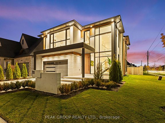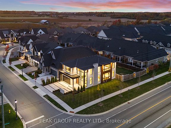 Modern Luxury Meets Refined Design Built by Rahnama Homes, this masterpiece two-storey residence is ideally located in the highly sought-after community of St. Davids in Niagara-on-the-Lake. Perfectly positioned on a corner lot, this home exemplifies modern architecture and elegant craftsmanship. From the moment you step inside, you're greeted by a grand open staircase, soaring ceilings, and expansive windows that flood the space with natural light.Custom feature walls and designer finishes throughout create an immediate sense of sophistication. As you continue through the grand foyer, the home unfolds into a striking open-concept living space that seamlessly connects the great room, dining area, and kitchen. The kitchen serves as the heart of the home-anchored by a 10-foot island, surrounded by premium cabinetry, beautiful countertops, high-end appliances, and designer fixtures. Recessed lighting and commercial-grade windows enhance the serene, airy ambiance, while your 20-foot custom sliding doors blur the line between indoor and outdoor living, perfect for entertaining or quiet relaxation. Upstairs, discover four spacious bedrooms retreats, each with its own private ensuite and walk-in closet. The primary suite evokes the essence of a luxury hotel, where privacy and openness are masterfully balanced. The walk-in closet, adorned with floor-to-ceiling custom cabinetry, flows effortlessly into a spa-inspired 5-piece ensuite, complete with a soaking tub, glass shower, and designer double vanity. Luxurious living continues into your fully finished lower level -featuring a home gym, theatre room, and recreation area with walk-out access to the backyard. A stylish 3-piece glass-tiled bathroom, ample storage, and a cold cellar complete this versatile space.Every inch of this residence has been curated with care and precision. From its architectural details to its luxurious finishes, this home is more than a place to live-it's a statement in modern luxury living.