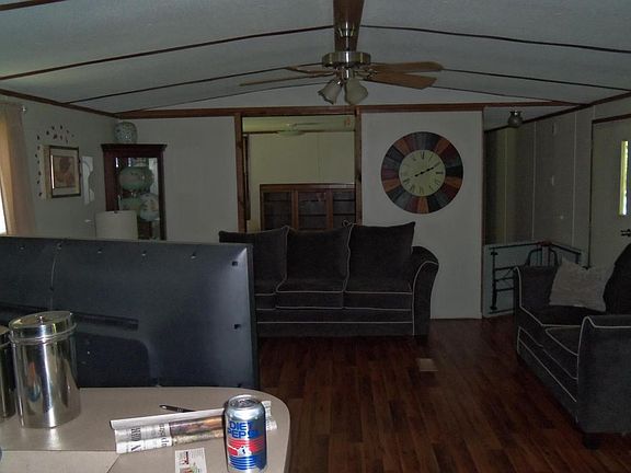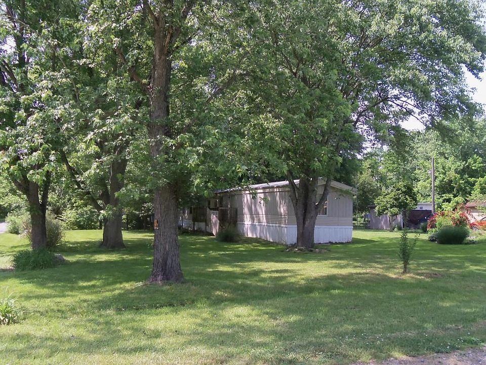Two shaded corner lots running along a large creek and include a 1999 Hamilton 1216 sq ft mobile home in Happy Hollow Resort. Covered deck. 3 bedroom, 2 bath. Wood burning stove. Spacious master bedroom with a large walk in closet. Detached garage. Security cameras. Buyers agent to verify acreage.