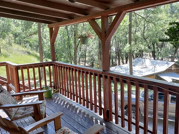 Nestled on a Hilltop, this charming 2-bedroom, 2-bath gem sits high above the river, offering peace, privacy, and character. Inside, you'll find warm wood accents, a rock fireplace with a wood-burning stove, and abundant natural light from large windows and skylights.The home features a metal roof, Anderson sliding doors (front and back), and stylish barn doors on both bedrooms. The property also includes a single-car garage with storage room, an attractive carport, and multiple inviting outdoor spaces. Enjoy a covered front deck, a side deck, and additional sitting areas surrounded by beautiful rock walls and walkways--perfect for entertaining or simply relaxing.This property is a true blend of comfort, craftsmanship, and character--an ideal retreat in a serene setting.