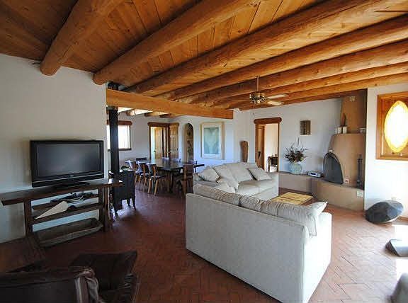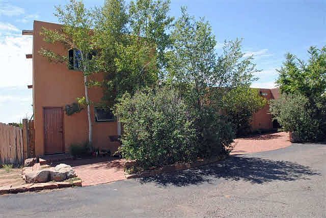 DON'T WAIT THIS IS GOING BACK TO THE BANK AT END OF AUGUEST. Classic Santa Fe Style house and guest house. The passive solar primary residence is single level, 1513 sqf with 3 bedrooms and 2 full baths. Split bedroom design. Spacious master bedroom has a special nook for an office or reading room as well as a private patio. The Kitchen has custom cabinets, granite counters and stainless steel appliances. Hand-peeled vigas and brick floors throughout. Enjoy the views from the fully landscaped courtyard, large, walled and secluded. In addition to the main 1513 sqf the home has a finished 634 sqf garage, plus a stuccoed outbuilding. The attached 768 sqf guesthouse has a kiva fireplace, 2nd floor bedroom and private yard. Convenient fully paved driveway. Eldorado offers a pool, tennis, basket ball and volley ball courts. As well as biking, dog-walking and hiking trails, nearby shopping, a community center, library,and senior center
