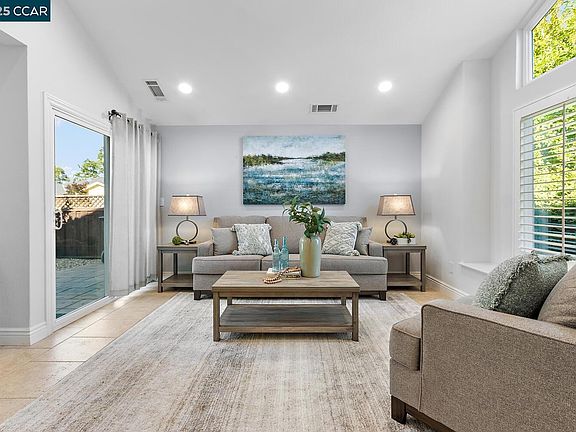 Welcome to this beautifully updated and impeccably maintained 4-bedroom, 2.5-bath contemporary home, tucked away on a private street in Pleasant Hill’s sought-after Poets Corner. This home offers approximately 1,920 square feet of light-filled living space, combining comfort, style, and functionality. The spacious living room features vaulted ceilings, custom tile flooring, and expansive windows that flood the space with natural light. The dining area connects to the kitchen—a chef’s dream with custom cabinetry, tiled backsplash, quartz countertops, an induction cooktop, and a charming breakfast nook overlooking the garden. The family room offers a cozy and inviting space for relaxing or entertaining. Along with the living room, it has direct access to the serene backyard, a private retreat with pavers, a lush lawn, mature fruit trees, and plenty of room for entertaining, playing, or simply unwinding. The primary suite features dual mirrored closets, a double-sink vanity, a separate tub and shower, and updated tile flooring. Additional bedrooms include walk-in closets. Close to downtown, top-rated Strandwood Elementary, Pleasant Hill Middle, Sequoia Schools, and the PH Park/Teen Center. Easy access to the Canal Trail, BART & major highways.