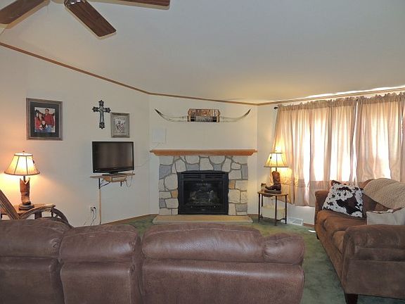 Great Floor Plan! This well kept 3 bedroom 2 bath home has a great floor plan! Open living room and dining room with vaulted ceilings. Spacious kitchen with breakfast nook, center island, and built in desk. Huge master bedroom with walk thru closet and master bath with separate garden tub and shower. Both additional bedrooms are also large and split from master. Main floor laundry with mud room. Walkout basement features large family room and workshop with lots of storage. Drive under garage is oversized and finished with insulated doors. Nice end of the road lot with extra space. Privacy fence and chain link for pets and kids! Walking distance to K-8 school.