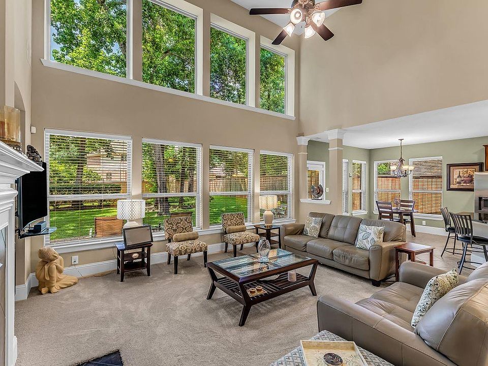 Step into this beautifully designed, energy-efficient home where thoughtful updates and modern conveniences create a truly inviting living space. A recent high-grade roof and new luxury carpet downstairs set the stage for comfort and durability, while home automation updates enhance everyday ease. The open-concept kitchen features an inclusive island with gas cooktop, seamlessly connecting to the family room with soaring ceilings—ideal for gatherings. Natural light floods every corner through large windows, especially in the downstairs living area and bedroom, offering stunning nature views. Five spacious bedrooms boast ample closet space, ensuring storage is never a concern. Outside, the park-like backyard offers plenty of room for a pool, perfect for outdoor entertaining. The oversized garage includes space for a workbench and tools. Located in a close-knit community, this home is designed for effortless living with energy-saving features, modern updates, and exceptional charm.