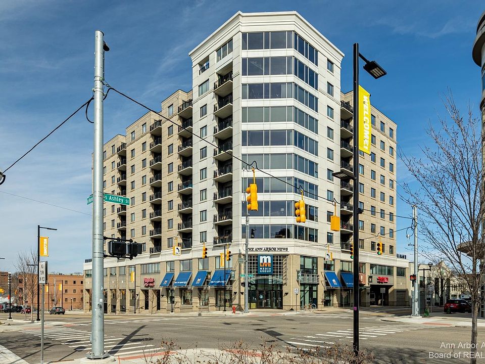 Welcome to your urban retreat in the heart of downtown Ann Arbor! This stunning one-bedroom condo features an updated and luxurious bathroom, a new furnace, a new garbage disposal and a new washer/dryer, ensuring that you'll enjoy both comfort and convenience in equal measure. In this spacious and beautifully appointed unit, you will find everything you to need to enjoy downtown living at its best. From the warm hardwood floors and the chef's kitchen, to the stylish and modern fixtures, no detail has been overlooked. A deeded parking space and storage locker are also included in the underground garage. Take in the breathtaking city views stretching all the way to the Big House from your living room and balcony. And with its prime location, you are within walking distance of the best shops shops, restaurants, and cafes Ann Arbor has to offer, this is the perfect place to call home for those who love the excitement and energy of city living. Don't miss your chance to experience it for yourself - schedule a showing today! HOA at Ashley Terrace includes heat, water, bldg mainentance with an on site, fantastic, building superintendent, snow removal, trash and recycling.