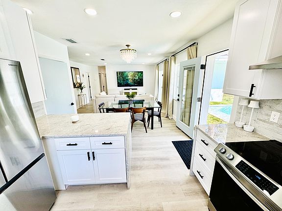 This entire house was recently remodeled to the studs with smart LED lighting throughout, marble in bathrooms, granite kitchen, new toilets, plumbing, electrical, roof, hardwood floors, pavers driveway, Central A/C, 10x10 Ft Shed with AC, power and electrical (for storage, office, etc.). 5 Bedroom, 3 Bathroom house currently set up as 3 Bedrooms and 2 Offices. Perfect for two adults working from home with 2 dedicated offices. The property is fully furnished and turnkey for $4,295 per month which includes everything you see in the photos. Tenant responsible for all utilities: Electric (varies), Water/Sewer/Trash (varies), Internet/Cable (varies).