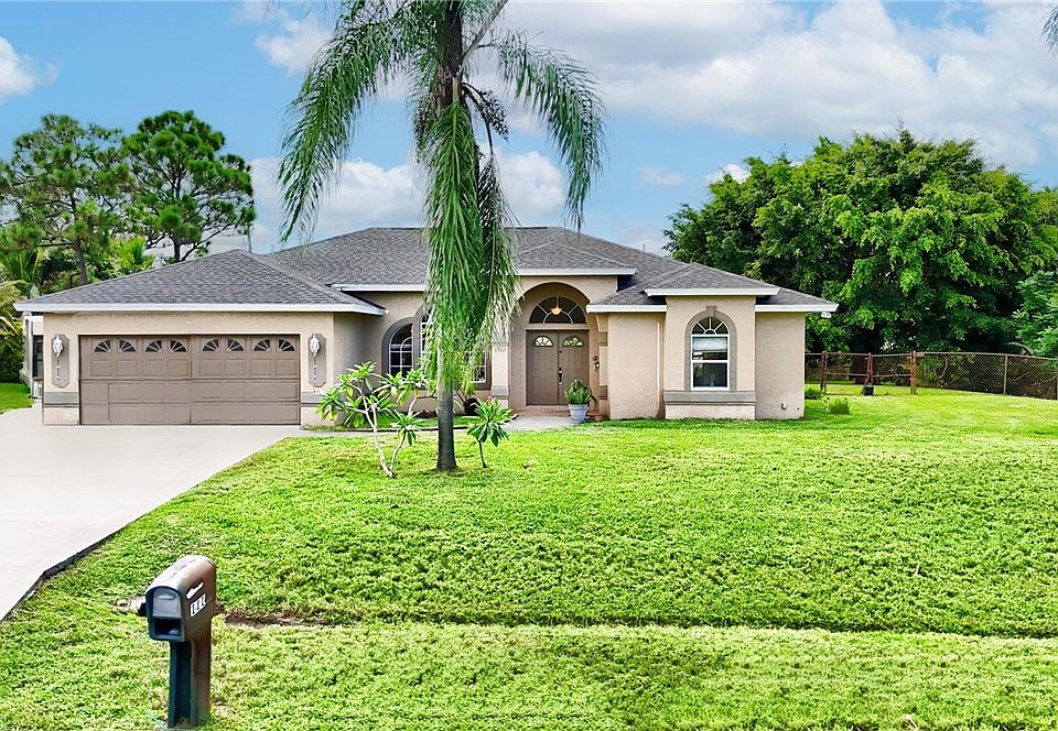 Ideal family home in a prime location! This 4BR/2.5BA CBS home offers 2,186 sq ft under air on a .48 acre with cathedral ceilings and an open floor plan. Features include formal living, family, and dining rooms, spacious kitchen with granite counters and a workstation. Roof (2021) and storm shutters for added peace of mind. The primary suite offers lanai access, his & hers walk-in closets, and a luxurious bath double sinks, granite counters and separate shower. Includes 3 guest bedrooms, cabana bath, laundry room, 2-car garage, screened in lanai, and a large backyard.