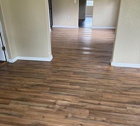 This 4-bedroom, 2-bath home is situated on a corner lot in downtown Sweeny and features laminate flooring throughout.