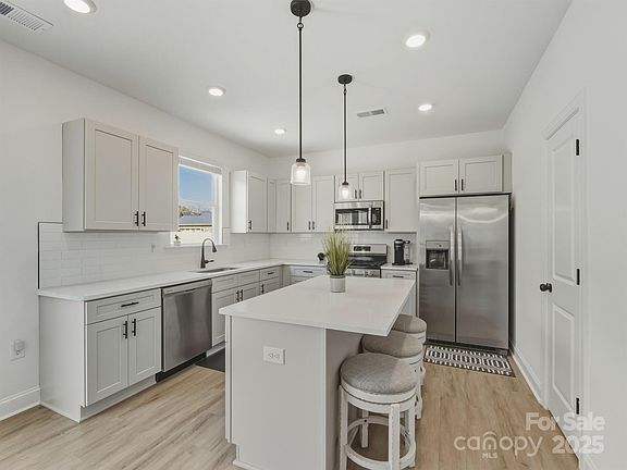 LOCATION, LOCATION, LOCATION! SELLER OFFERING This beautiful 2024-built home sits in the heart of downtown Huntersville—just steps from shops, restaurants, bars, hospitals, churches, the greenway, tennis and pickleball courts, city events, and so much more. Assigned to GREAT SCHOOLS - Huntersville Elementary, Bailey Middle and W. A. Hough High. Inside this pristine home, you’ll find four spacious bedrooms (INCLUDING A MAIN LEVEL BEDROOM AND ATTACHED FULL BATH) and three full baths. Extra-large bedrooms feature generous closets, and there’s Ethernet in every room. The home showcases upgraded waterproof LVP flooring throughout, 9’ ceilings on the main level, and 8’ ceilings upstairs, with ceiling fans in every room. Blinds on all the windows and the sliding door. The gorgeous kitchen offers quartz countertops, large sink, dovetail shaker cabinetry, and soft-close drawers and cabinets in both the kitchen and baths. Stainless steel appliances, a gas stove, and a gas line on the patio for your grill make this home ideal for cooking and entertaining. Refrigerator, washer, and dryer—all less than a year old—remain. All MOEN products throughout the house have a lifetime warranty. Enjoy a fenced, flat backyard with Bermuda sod, attractive landscaping, and a low-maintenance lifestyle with no HOA. Easy access to I-485, I-77, and the park-and-ride for express bus service to Charlotte. The home has been meticulously cared for—no pets or smoking, or shoes have been worn inside. Truly better than new! Additional highlights include a transferable 2-year Red Cedar systems warranty (parts only) and a 10-year Maverick structural warranty. The proposed future site of the Red Line commuter rail station will be located nearby—an exciting addition for the area!