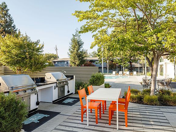 With ten acres of serene landscaping, the only thing greener than the lush grounds of Madrone Apartments will be the shade of your friends' envy when they visit. The wooded paradise of these Mountain View apartments truly has no equal. All-new insides feature stainless-steel kitchens, granite countertops, designer lighting, smart home tech, and cottage-style patios or balconies. No need to sweat the commute either. Madrone is located smack dab in the middle of big time tech employers like Google, Apple, and Lockheed Martin. And when you need to get outside you're just a short trip from Stevens Creek Trail hiking and the Saturday farmer's market. or hop on the San Antonio Caltrain or VTAstations are less than half a mile away.