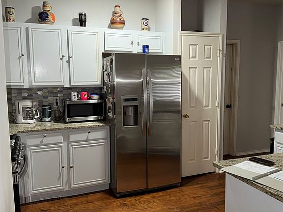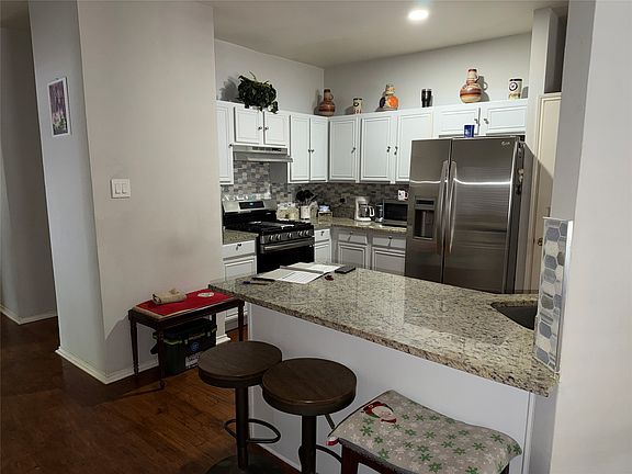 Charming Oak Cliff home just minutes from Bishop Arts! This well-kept 3 bedroom, 2 bath property offers a bright and open layout with plenty of natural light, wood-look floors, and a cozy brick fireplace that anchors the living space. The kitchen features granite countertops, white cabinetry, stainless steel appliances, and a breakfast bar that opens into the dining area. The spacious primary suite includes a large bathroom with a soaking tub, separate shower, and double sinks. Enjoy a generous backyard with room for outdoor gatherings, plus a long driveway with ample parking. Conveniently located near popular restaurants, shopping, and downtown Dallas, this home blends comfort, charm, and unbeatable location.