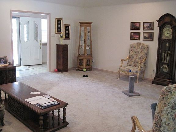 Very lovely home, quiet area. Brick with nice landscaping front and back and sprinklers. Large great room, formal dining, great kitchen with custom cabinets, eating bar and breakfast area. Split bedroom plan, large utility. Very spacious home and good floorplan. Lots of tile used in house, white wash cabinets, fireplace, 13' ceilings in great room,wood blinds and ceiling fans. Home is all electric, garage door openers and security system, large open entry. House and carpets to be cleaned by 5/28