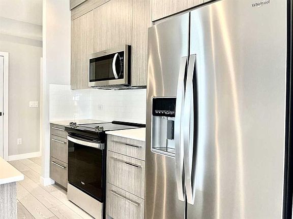 Corner unitOpen-concept layoutOversized balconyLofty ceilingsFull-height cabinetrySoft-close doors and drawersSleek stainless-steel appliance package