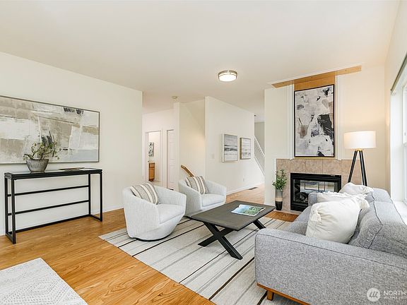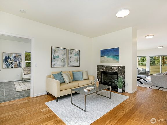 Located in Seattle’s desirable Broadview neighborhood, this spacious and light filled three-level home offers comfort and versatility. The main level features a welcoming lounge area with a two-sided fireplace, a large light-filled living room that opens to an entertainment-sized deck, a well-appointed kitchen, dining area, den with deck access, three-quarter bath, and laundry. Upstairs, the primary suite includes territorial views, a walk-in closet, and en suite bath, plus a family room, two bedrooms, and full bath. The lower level offers a bedroom, garage, and space plumbed for an ADU. A partially fenced yard and extra parking complete the property, near Carkeek Park, trails, shopping, dining, and major routes. Pre-inspected!