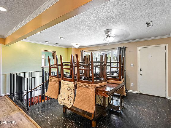 All-brick home on a large, level lot with mountain views, a screened porch, and a covered porch. Convenient to Oak Ridge, Clinton, Oliver Springs, and Knoxville. The lower level offers a second kitchen/wet bar and a large family or media room that could serve as additional living quarters. An oversized metal garage/building sits on a concrete pad, has garage doors on both ends, and is designed for high wind resistance.