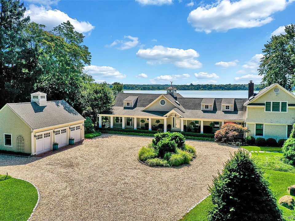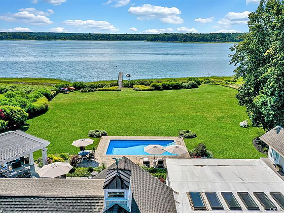 Introducing 111 Old Field Road, Setauket a truly exceptional waterfront estate offering 177 feet of uninterrupted shoreline and panoramic views of Conscience Bay. Tucked away behind a long private drive, this majestic home sits gracefully back from the road, delivering the ultimate in privacy and elegance. The approach is breathtaking, and the beautifully landscaped grounds set the tone for what awaits. A three-car detached garage provides ample space for your vehicles, water toys, or collector’s items, while the backyard is a serene sanctuary featuring an in-ground pool overlooking the tranquil bay, a outdoor kitchen, and a pergola perfect for relaxing or entertaining. Inside, the home features an open-concept layout anchored by a designer chef’s kitchen with top-of-the-line appliances, flowing seamlessly into the sun-drenched living room, formal den, and an expansive sunroom — all framing picture-perfect views of the water. The main level hosts three spacious bedrooms, while the luxurious primary suite occupies a private wing upstairs, offering a spa-like retreat. Two additional upstairs bedrooms on the opposite side of the home create the perfect guest or in-law suite setup. With its ideal blend of modern sophistication and coastal charm, this rare offering in the heart of Old Field provides the ultimate lifestyle privacy, elegance, and the calming presence of the bay just beyond your backyard.