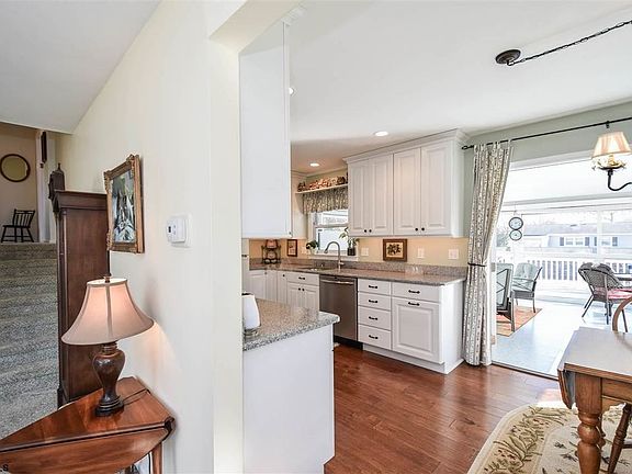 Updated 4 bedroom, 2 bath split level. New kitchen (2014) with white cabinets with soft close drawers, granite counters tops and engineered wood floors. Gas heater (2014), central air (2018), Roof (2015), Deck (2016). French doors to 3 huge sun room. New trex deck. Above ground oval pool has new cover, pump and filter. Liner is 2 years old. Plus fenced yard and outdoor shower. Some furnishings are also negotiable